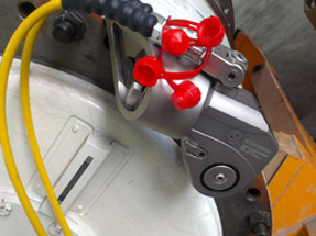 聚頂機(jī)械針對(duì)化工廠裝備公司的情況,派遣了有現(xiàn)場經(jīng)驗(yàn)的技術(shù)員前往查看,現(xiàn)場工況相對(duì)不是很復(fù)雜,標(biāo)配的液壓扳手就能解決,但也存在較為特殊的情況,如法蘭連接處不是平面,夾角不是垂直或者工作空間狹小等情況,聚頂機(jī)械公司從用戶的角度出發(fā),給出的解決方案不光滿足工作要求