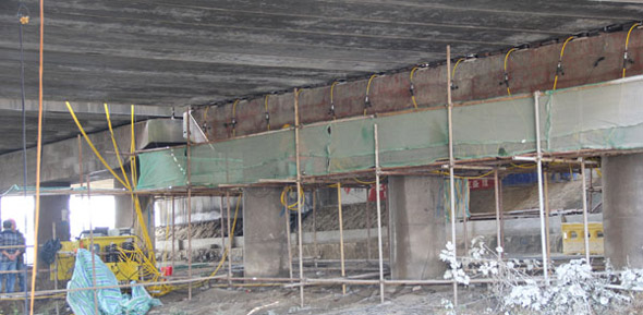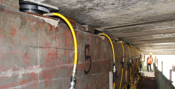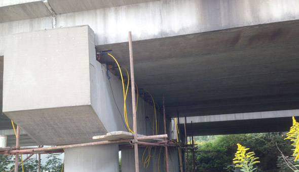 江廣高速公路改造工程JG-GG-2標(biāo)許莊周梓中溝中橋,采用同步千斤頂104臺(tái)將原有橋梁抬高50mm及舊支座進(jìn)行更換,此項(xiàng)目為泰州市重點(diǎn)城建項(xiàng)目、國(guó)家高速主干道京滬高速江都至廣陵段(簡(jiǎn)稱江廣高速)改擴(kuò)建工程, 此次工程將對(duì)該橋進(jìn)行拼寬拓孔,即在原有位置往東側(cè)增加4孔,加長(zhǎng)86米。